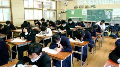 3日間実施された学年末テストもようやくゴールが見えてきました。現在、数学のテストに取り組んでいます。最初は計算問題が出題されている模様。うっかりミスに気をつけて確実に解き進めましょう。