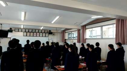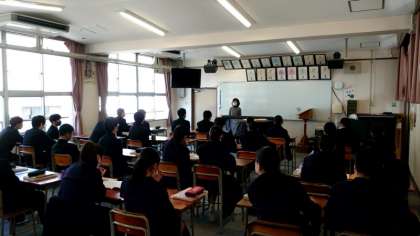 3年生で音楽の授業が行われています。音楽室で授業を受けるのも今日が最後かも…。これまで3年間、歌ったり、演奏したり、音楽の素晴らしさをいろいろと学んできました。今日もみんなで楽しみましょう!