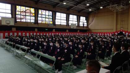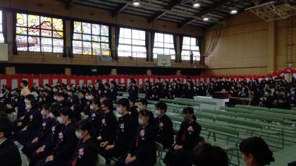 立派に成長した姿で皆さん入場してきました。3年前の入学式とくらべてグンと心も体も成長していますね。