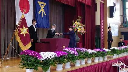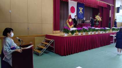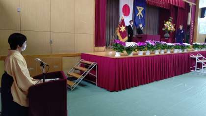 授与式が始まりました。担任の先生から名前を呼ばれ立派に返事をし、証書を受け取っています。厳粛な雰囲気の中で進んでいっています。