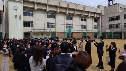 卒業式後、それぞれの学級で最後の学活を終え、花道を通ります。皆さん胸を張って立派な姿です。あたたかく見送られています。皆さん、希望に満ち溢れた、いい顔をしていますよ。