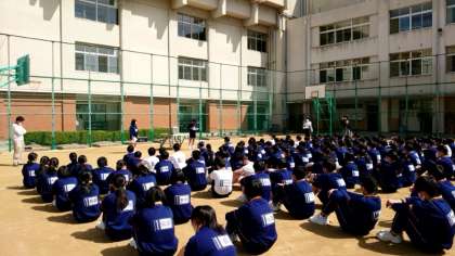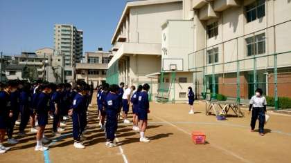 運動場で2年生のクラス対抗競技「ひまわりカップ」が始まりました。各クラスの体育委員さんがすべての企画・運営を行うとのこと。学年行事もこれが最後。思いっきり楽しみましょう。