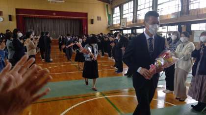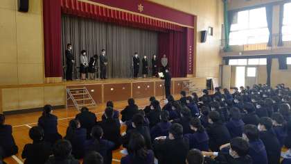 生徒向け離任式でお一人ずつ先生方からお言葉をいただきました。どの先生方も高津中の皆さんの事を想ってのあたたかいメッセージがお話の中に込められていましたね。しっかり、胸に受け止めて、これからの高津中を築いていきましょうね。