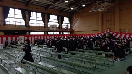 1年生1組の入場です。先輩の案内のもと、体育館に入場してきました。