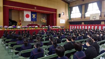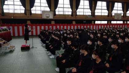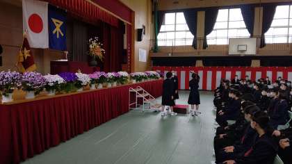 先輩から「在校生歓迎のことば」がありました。中学校と小学校のちがいや、先輩からのアドバイスなど皆さんの緊張を解きほぐすようお話がたくさんありました。困ったら、ぜひ先輩を頼ってくださいね。