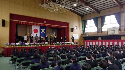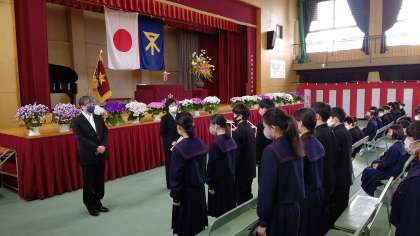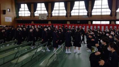 式が終わりに近づきました。式のあと、新入生は各学級で最初の学級活動があります。