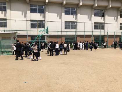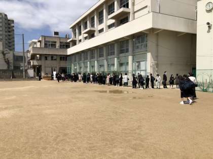 学級活動後に運動場において、各家庭で写真撮影が行われていました。記念となる写真がたくさん撮れていたようですね。お天気も良くなり思い出の1枚になったことと思います。