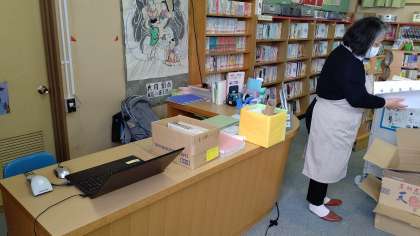 毎週、火曜日は図書館補助員の先生が来校されます。今日も新学期に向け、皆さんのために図書の整備を行っていただきました。新しい図書との出会いが楽しみですね。