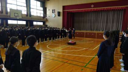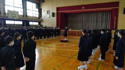 始業式に続き、生徒会役員による「対面式」が行われました。生徒代表による歓迎のことばで新入生をあたたかく迎えました。その後、新入生からも先輩にむけて誓いのことばが述べられました。お互い支えあって高津中学校をより良い学校にしていってくださいね。