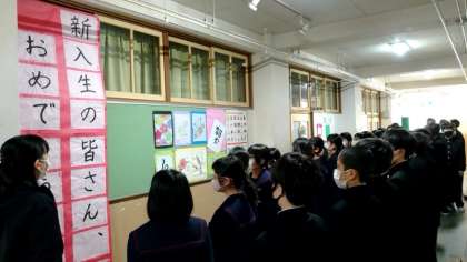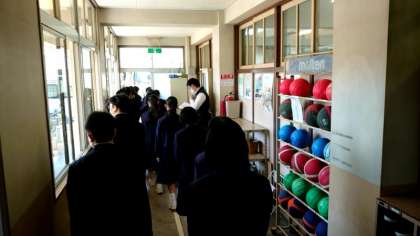 1年生の皆さんが校内を探検中。職員室をはじめ、学校生活で利用するお部屋を案内してもらいます。慣れるまで少し時間がかかりますが、先生方にいろいろと尋ねてくださいね。