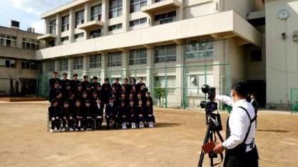 金曜日の午後。写真屋さんが到着し、学級写真の撮影が始まりました。新しいクラスになって最初の記念写真。皆さんの笑顔がステキですね。