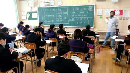 1年生数学科の授業が始まりました。算数から数学へと教科の呼び方が変わり、内容もレベルアップしていきます。最初は「正の数・負の数」から教わります。今後学習していく計算問題のベースとなるので、しっかり学んでくださいね。