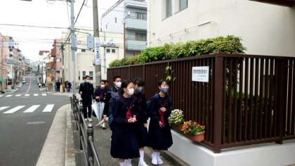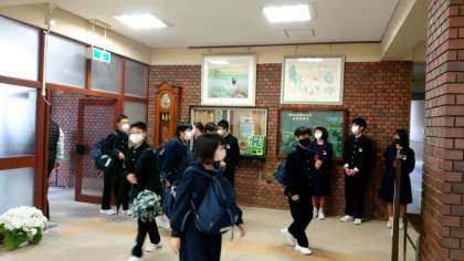 生徒会の皆さんとあいさつを交わします