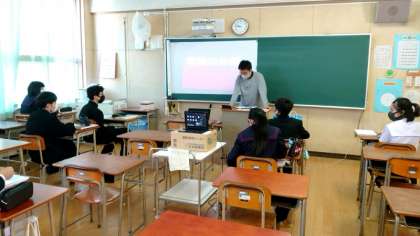 1年生理科で「植物の特徴」を学習中。今日は花のつくりを調べます。校内や街中で多くの花を見かけるので、観察するには絶好の季節ですね。