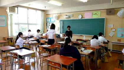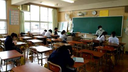 学習が始まる前の教室はゆったりとした時間が流れます。教科書やノートを取り出して準備する人、お友達や先生と(束の間の)おしゃべりを楽しむ人、それぞれ思い思いの時間を過ごしています。