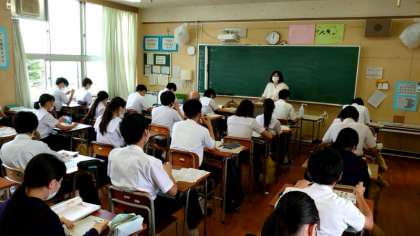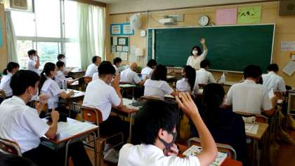 先生の質問に、皆さん挙手でこたえます