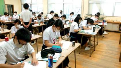 2年生美術科で空き缶の模写に挑戦します。それぞれ持参した空き缶をじっと眺め、ロゴマークも含めて本物そっくりに描きます。缶の質感を描くのも難しそうですね。じっくりと取り組みましょう。