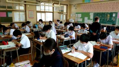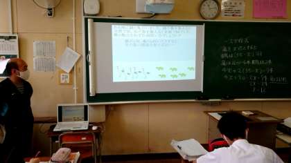 2年生数学科で連立方程式を学習中。今日は「つるかめ算」の問題を、連立方程式を使って解き進めます。鶴の数をx羽、亀の数をy匹として方程式をつくります。皆さん上手く式を導き出せましたか?