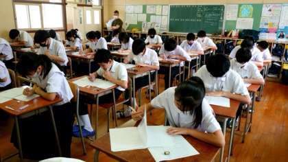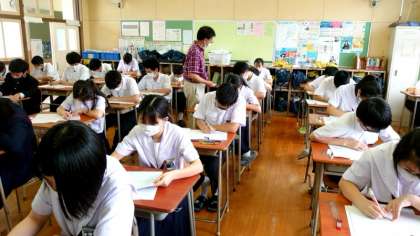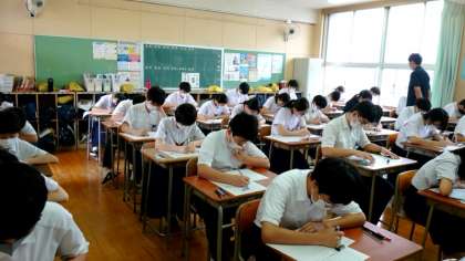 3年生の皆さんが「数学」の問題に取り組んでいます。本日最後のテストです。授業で教わった計算問題が出題されている模様。解き方をよく思い出し、ケアレスミスの無いよう気をつけてくださいね。
