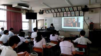 2年生音楽科で「鍵盤楽器の特徴」を学習中。ピアノ・チェンバロ・パイプオルガンなどいろいろな楽器の中から、今日はパイプオルガンの特徴を勉強します。バッハの「フーガ ト短調」で演奏される楽器ですね。