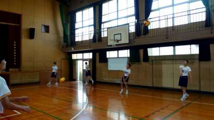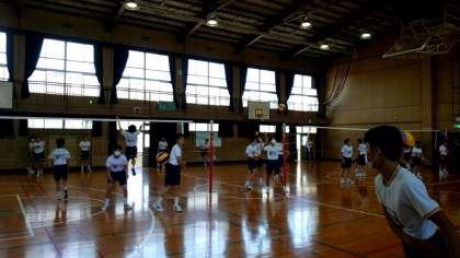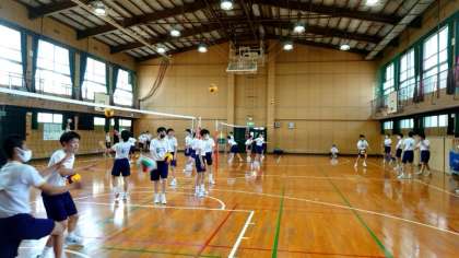 3年生男子体育でバレーボールのアタック(スパイク)練習に取り組みます。大きく腕を振ってジャンプし、ボールを上手にヒットさせるのがポイントです。皆さんうまく打つことができましたか?