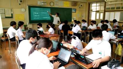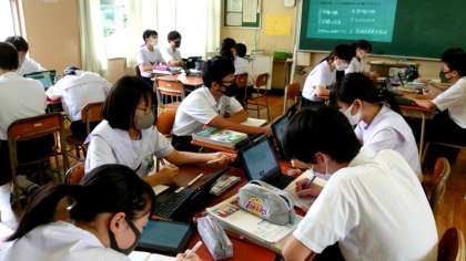 2年生社会科で調べ学習を行っています。中国・四国地方の産業の中から「観光」の特徴を学習します。さっそく全員にタブレット端末が渡され、インターネットで調査開始。皆さん慣れているのか、サクサク調べていますね。