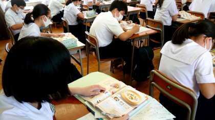2年生家庭科で「食材の切り方」を学習中。乱切りや輪切り・いちょう切りなど、同じ食材でも献立によって切り方が変わります。コロナ禍で調理実習に取り組めないのが残念ですが、再開時に実習できれば良いですね。