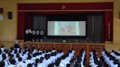 パソコンで作成したスライド資料を用いながら、みんなで考える場面も設けられていましたね。場面を想像しながら、周りのお友達と話し合い発表も行いました。改めてみんなで考える時間になりましたね。