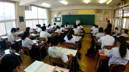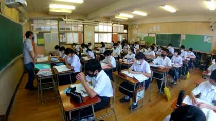 1年生数学科で「素因数分解」の復習を行っています。まずは「素数とは?」の説明からおさらいします。先生のお話を聞いた後、さっそく問題にチャレンジします。くり返し問題を解いて力をつけましょう。