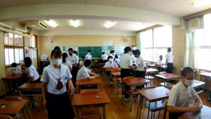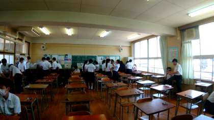 3年第1回実力テストが始まりました。テスト開始前の教室は、友達とおしゃべりしたり、次の教科の下調べをしたり、リラックス・モードです。今日1日、テストが続きますが、頑張ってください!