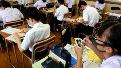 2年生家庭科で手芸の実習が始まりました。各自が描いたデザイン画をもとに、クロスステッチに取り組みます。カラフルな刺繍糸を使って、ステキな作品を縫い上げてくださいね。