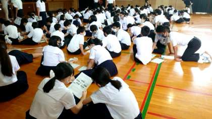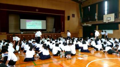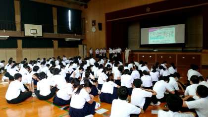 2年生の皆さんが体育館に集まってきました。「塾帰りにおしゃべりし、帰宅がずいぶん遅くなった場合」を想定し、望ましい行動についてみんなで意見を出し合います。コーディネート役の保健委員さんが大活躍していましたね。