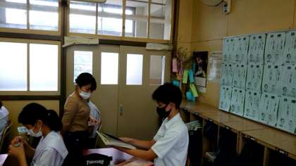 今日は七夕。コロナ禍の中、生徒の皆さんの気持ちが少しでも和めば…と、高津中の先生が笹を持ってきてくださいました。笹飾りを見ると、ほっこりしますね。