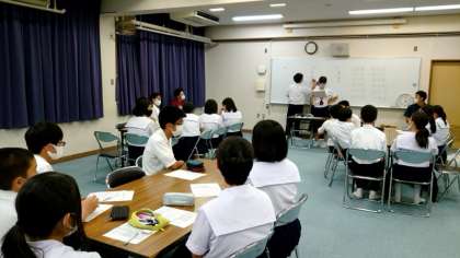 風紀委員会のようす ホワイトボードにまとめて振り返っています