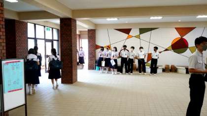 数日ぶりに晴れ間が広がる朝。今日も皆さん元気に登校してきました。今朝はセミの鳴き声が聞こえ、本格的な夏の到来を感じます。暑くなりそうなので、マスクの脱着など熱中症予防に努めましょう。