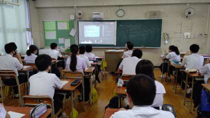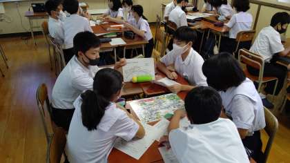5・6限目に2年生では、一泊移住に向けた取組をしました。映像の説明を参考に、班で周るコースを考えます。配付された地図も用いながら、楽しく計画を立てていましたね。見るところがたくさんあって、様々な意見が出ていました。