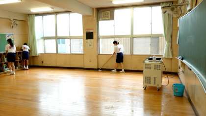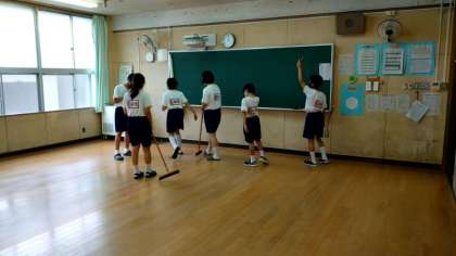 現在、学期末恒例のワックスがけが行われています。1年生の皆さんは中学校に入って初めての取り組みです。美化委員さんを中心にクラスメイトがお手伝い。みんなの協力で教室を美しく磨き上げましょう。