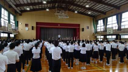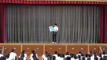 今日の全校集会では、先週末のワックスがけの机・イスの運び込みがあったにも関わらず、素晴らしい集合でした。校長先生からもお褒めのお言葉をいただきましたね。また、今日は給食が1学期最後になります。給食に関わっていただいている方々に感謝しながら、給食を味わってくださいね。