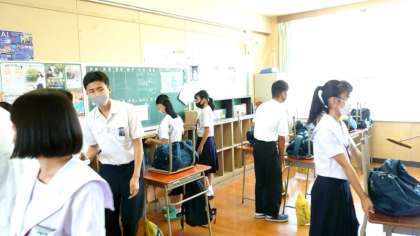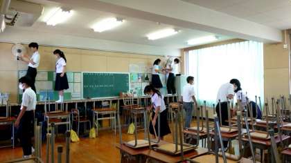 校舎3階は3年生の教室がならびます。今学期、仲間とともに過ごした教室をみんなで美しく清掃します。きっと教室も喜んでいると思いますよ。