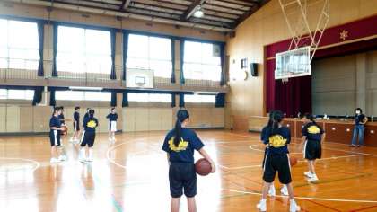 女子バスケットボール部の皆さんが練習に励んでいます