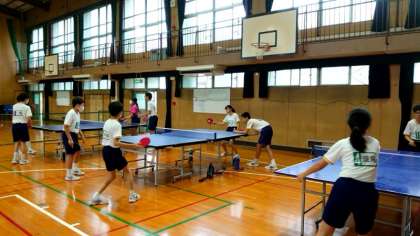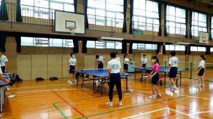 体育館では卓球部の皆さんが練習に励んでいます。明後日の公式戦にむけて気合が入っています。これまでの頑張りに自信をもって、持てる力を発揮してくださいね。健闘を祈っています!