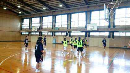 体育館では女子バスケットボール部の練習試合が行われています。他校の皆さんを迎えて、互いに実践力を養います。ふだんの練習の成果を試す良い機会になりました。これからも一緒に練習してくださいね。