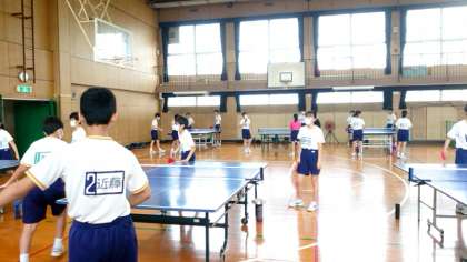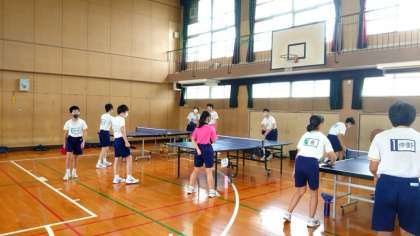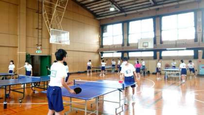 お盆休み明けの月曜日。多くのクラブが活動を再開しています。体育館では卓球部の皆さんが練習中。今週の火曜・木曜日の大会(試合)にむけた最終調整に取り組みます。試合では持てる力を存分に発揮してくださいね。