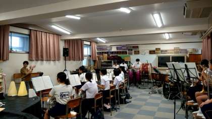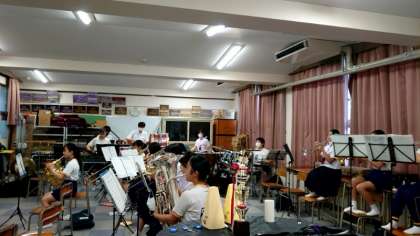 音楽室では吹奏楽部が練習中。各パート別に練習した後、みんなで合奏に臨みます。早いテンポの楽曲はリズムを刻むのが難しそうですね。2学期には吹奏楽部の皆さんのステキな演奏を楽しみにしています!