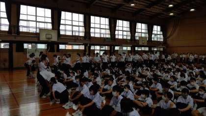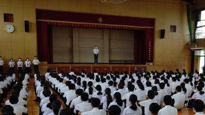 今日は全校登校日で久しぶりに全校生徒が登校しました。みんなに出会えてうれしい気持ちになりましたね。校長先生からは、70周年に向けて様々な所で準備が進んでいるお話がありました。主役となる皆さんは2学期、周年行事に向けて歴史を感じながら、精一杯力を発揮してくださいね。