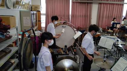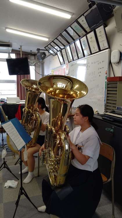 吹奏楽部ではみんなで音を合わせて演奏しています。息があった時の音色が美しいですね。力を合わせて演奏に励んでいます。