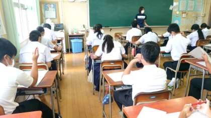 先週実施された1年生課題テストの結果が返却されています。国語科では、出題内容の解説や間違いが多かった問題の振り返りを行っています。皆さん先生のお話をよく聞いて、次回に備えましょう。