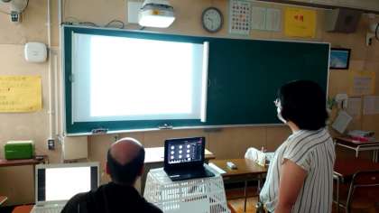 2年生数学科で1次関数を学習中。先生から出された問題を、皆さんお家で解きすすめます。問題が解けた人からパソコン画面に次々に手があがります。時間を見計らって、みんなで答え合わせ。皆さん正解していましたか?