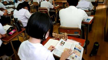 1年生国語科で「竹取物語」を鑑賞します。平安時代前期の物語で「かぐや姫」のお話として皆さんよく知っている作品です。国語便覧を参考に、当時の貴族の暮らしぶりを交えて学習します。時代背景を知ると作品の内容がより深まりますね。