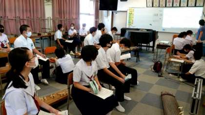 (上から)2年生音楽の授業のようすです